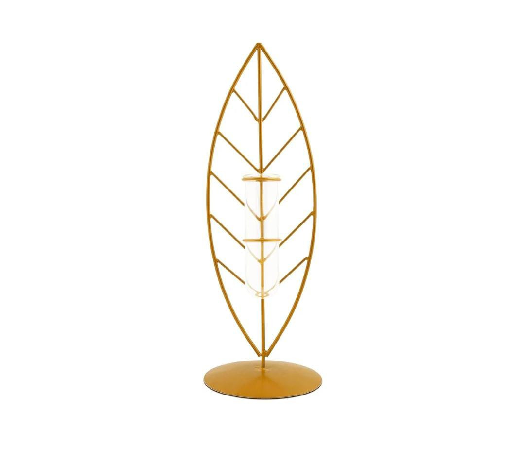 Bring a modern, elegant spot of greenery to your space with the Test Tube Planter with golden leaf-shaped stand from Secculent. This sleek propagation station is perfect for small cuttings, succulents, air plants, or single-stem blooms. This beautiful test tube pot is ideal for desks, window ledges, or as a thoughtful gift. In case you get a damaged piece, make a clear video of the product to replace it.